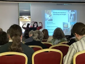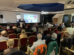 A small team of IWU volunteers managed a stand in the conference hall, chatting with delegates at break times and between presentations, sharing information about our services, and of course recruiting new members. Our colourful bookmarks – illustrated by committee member Lindsay J Sedgwick – were hugely popular.